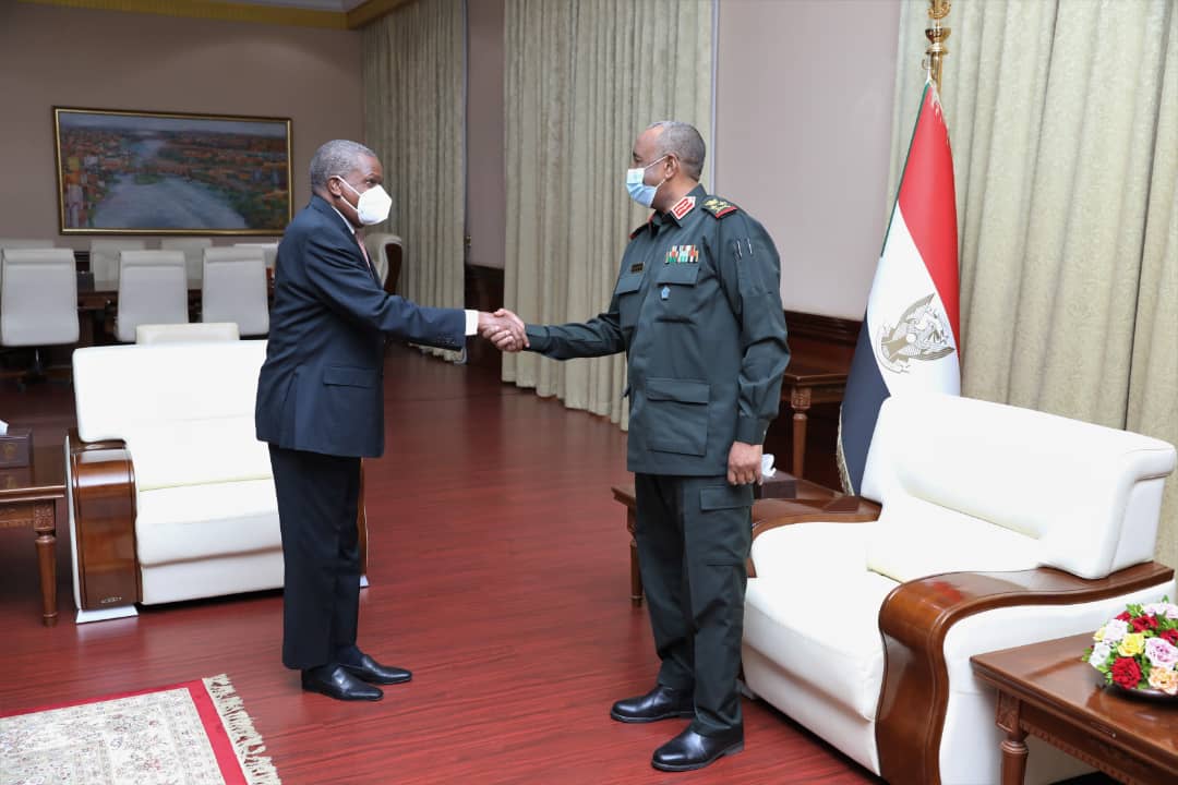 وأكد رئيس مجلس السيادة الانتقالي لدى لقائه اليوم بالقصر الجمهوري السفير الكيني لدى السودان السفير انقيوا موكالا الدور المحوري لكينيا في القارة الأفريقية في تحقيق السلام والإستقرار ممتدحاً جهود دولة كينيا في التوصل لإتفاق جوبا لسلام السودان الموقع بين الحكومة وحركات الكفاح المسلح فى أكتوبر من العام (٢٠٢٠).