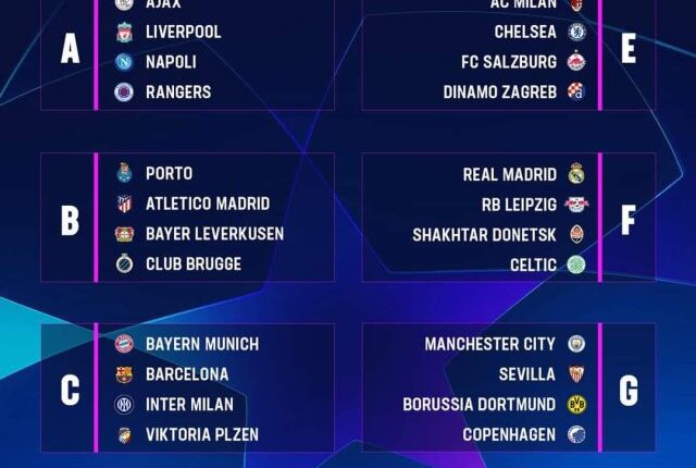 سحبت اليوم الخميس قرعة دور المجموعات من دوري أبطال أوروبا لكرة القدم في اسطنبول التركية والتي أسفرت عن المجموعات التالية: