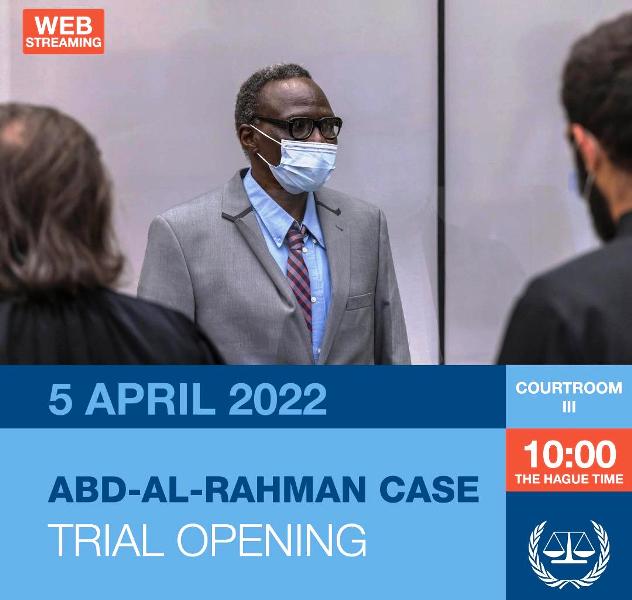 من المقرر ان تستأنف المحكمة الجنائية الدولية بلاهاي الاثنين محاكمة المتهم علي عبدالرحمن كوشيب. وسيدلي شاهد الاتهام الـ31 بشهادته حول هجمات مزعومة، قامت بها مجموعات التمرد المسلحة على موكجار خلال الفترة من يوليو واغسطس2003، والحملات التي شنت خلال شهر فبراير 2004،حيث تم اعتقال واحتجاز الذكور في موكجار في الفترة من أغسطس الى اكتوبر 2003.
