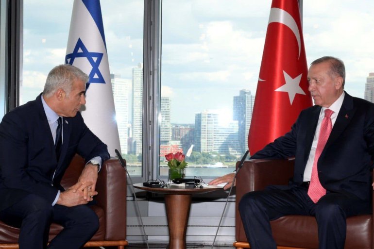 التقى الرئيس التركي رجب طيب أردوغان، الثلاثاء، رئيس الوزراء الإسرائيلي يائير لابيد في نيويورك، على هامش اجتماعات الدورة الـ77 للجمعية العامة للأمم المتحدة.