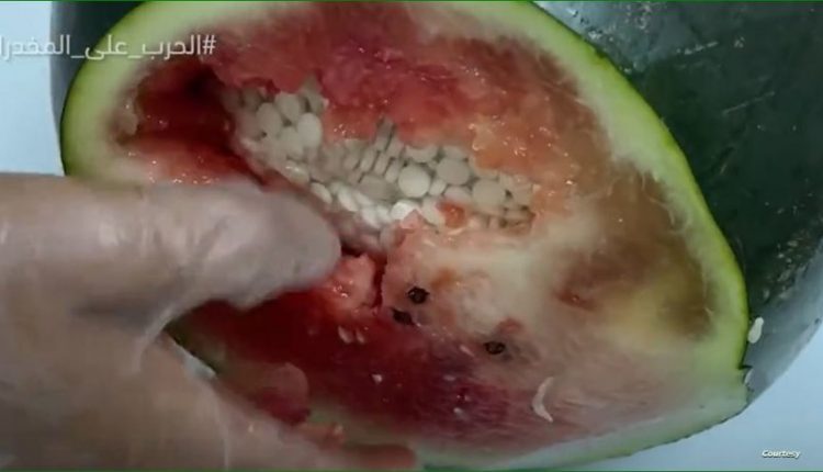 وكانت كل بطيخة تحتوي على كيس شفاف مغلق به كمية كبيرة من حبوب الإمفيتامين المخدرة.