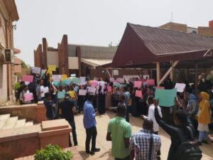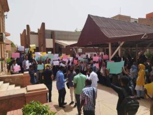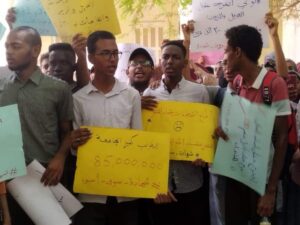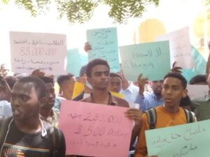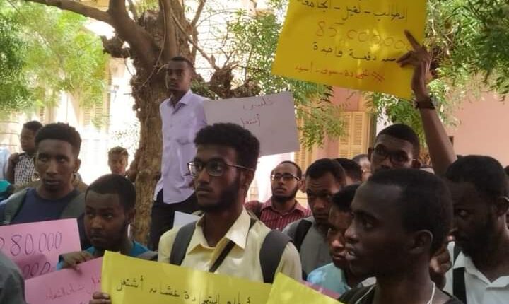 خريجو كلية الطب بجامعة الخرطوم ينظمون وقفة احتجاجية رفضاً لزيادة رسوم استخراج الشهادات التي بلغت 280 ألف جنيه مقارنة بـ 41 ألف جنيه للعام السابق.