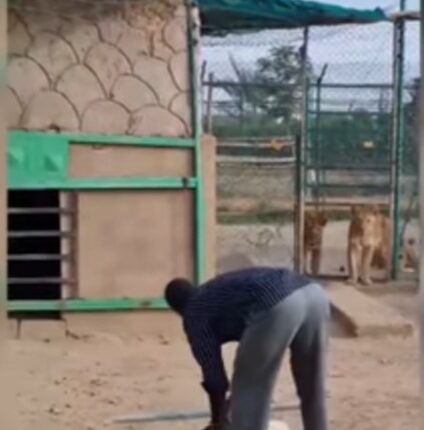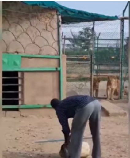 في مواجهة مباشرة شاهد: كيف يواجهة العامل سانتينو بحياتة لنظافة قفص الاسود بحديقة السودان للحياة البرية.