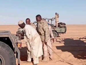 ينقذ مواطنا سودانيا وابنه بعد أن ضلا طريقهما فى الصحراء بالحدود السودانية الليبية.