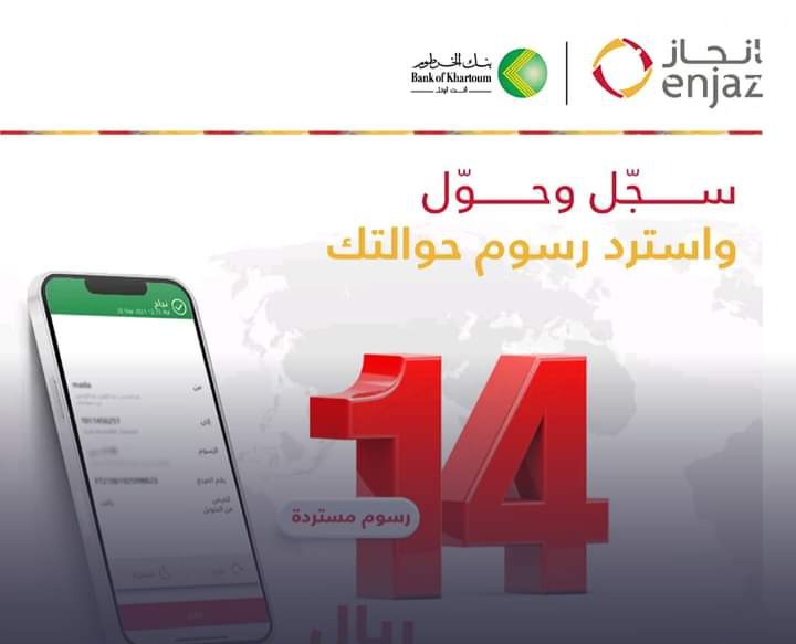 أعلن بنك الخرطوم عن إطلاق بنك البلاد لمستخدمي تطبيق إنجاز في المملكة العربية السعودية حملة (سجّل وحوّل).وقال البنك في تعميمٍ صحفي عبر صفحته الرسمية بفيسبوك ” حيث يتم إعادة (استرداد) رسوم الحوالة المعتادة (١٤ ريالا) “للمرسل” عند إجراء التحويل عبر التطبيق إلى حساب بنك الخرطوم”، وتابع”يستمر العرض حتى ٣١ يناير ٢٠٢٣”.