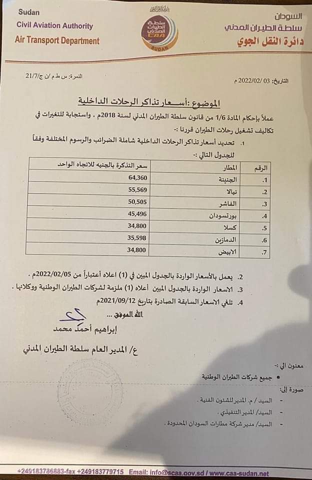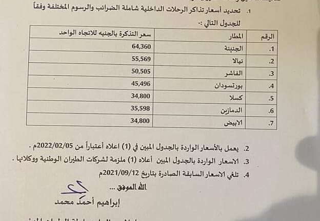 هاش سودان_ السودان: زيادة أسعار تذاكر الطيران الداخلي