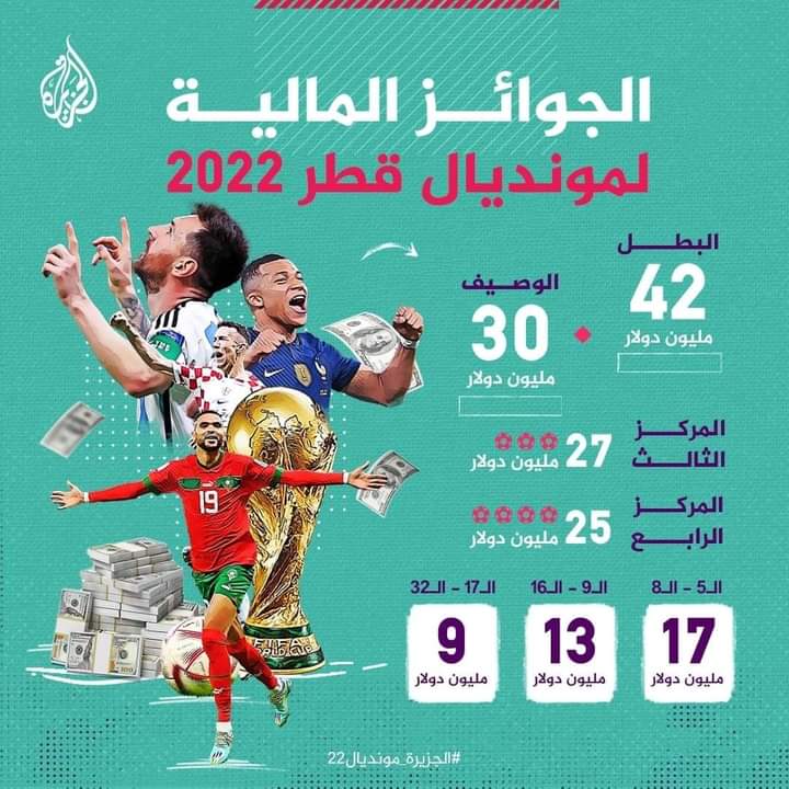 #مونديال_قطر 2022 الرياضة في ديسمبر 18, 2022 شارك #هاش_سودان-وكالات محلية. تعرف على الجوائز المالية لمونديال قطر 🇶🇦 شارك FacebookTwitterGoogle+ReddItWhatsAppPinterestالبريد الإلكتروني