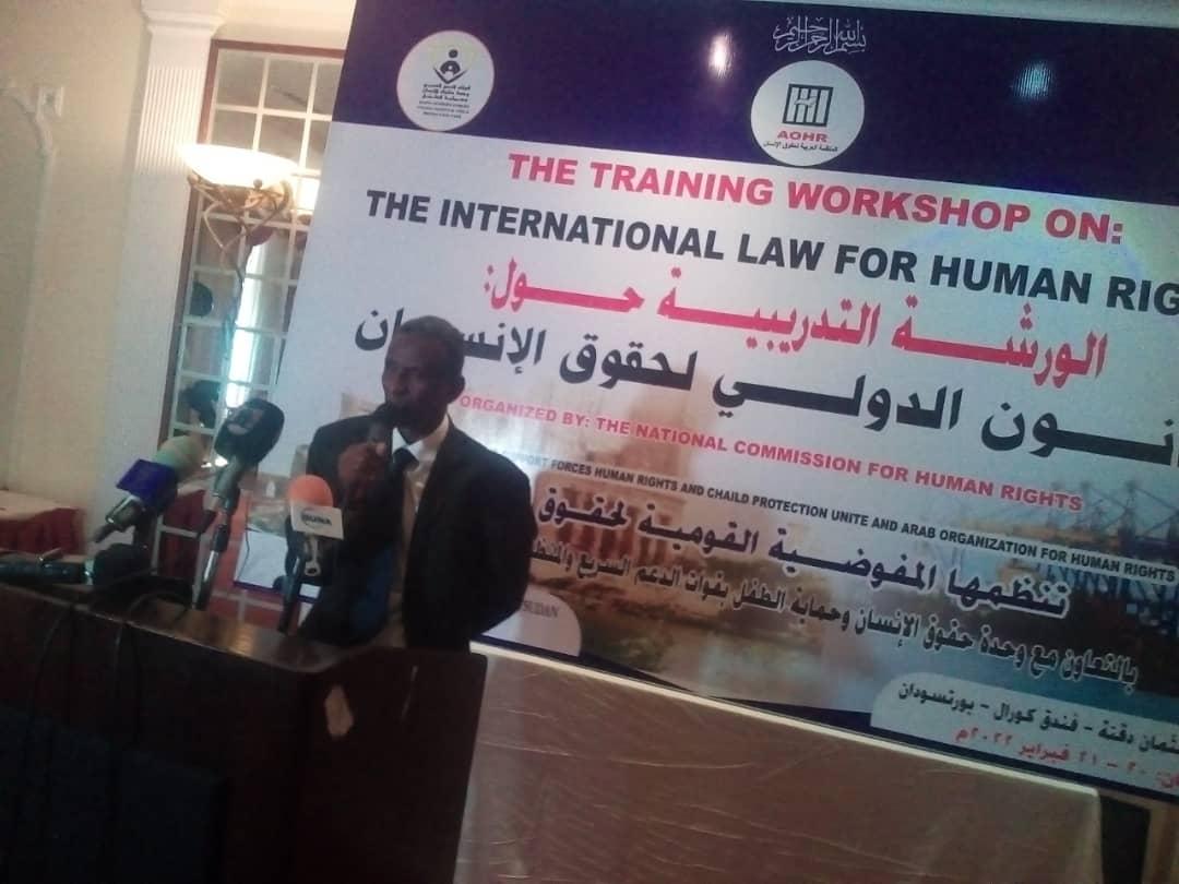 وخاطب الورشة التي تستمر فعالياتها حتى يوم غدٍ الاثنين والي ولاية البحر الأحمر المكلف علي أدروب، مؤكداً إهتمام الدولة وإحترامها لمباديء حقوق الإنسان ، والسعي الجاد لدعم وإسناد كافة الجهود في هذا المجال ، معلناً إستجابة حكومة الولاية الفورية لطلب إفتتاح مكتب لحقوق الإنسان والإلتزام بالمساهمة في توفير إحتياجات المكتب .