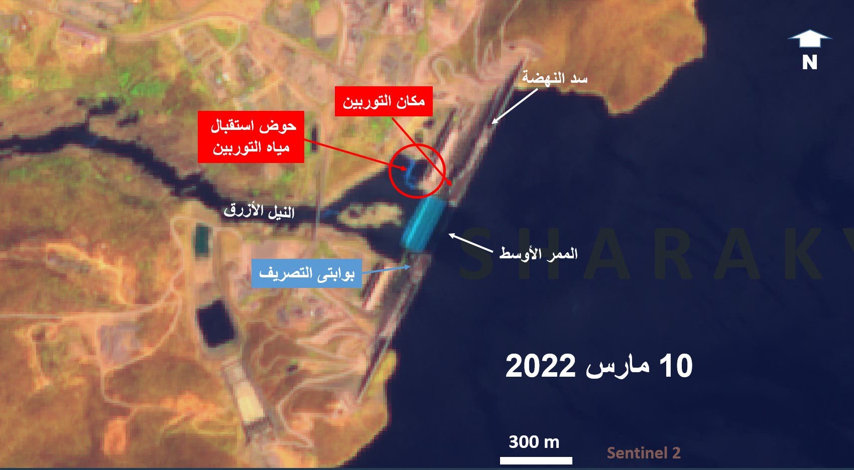 ووفق ما كشفه الخبير المصري عباس شراقي فإن المعلومات المتداولة والقادمة من إثيوبيا حاليا تفيد بقيام أديس أبابا بفتح بوابتي التصريف وهو ما لم توضحه صور الأقمار الصناعية الملتقطة يوم الخميس الماضي، لكنها وفق ما يقول لو صحت تلك المعلومات فإن ذلك يعني أن التوربين الذي أطلق رئيس الوزراء الإثيوبي شارة البدء لتشغيله، قبل أسابيع فشل في تصريف المياه التي تمر أعلى الممر الأوسط ولو كان يعمل بكامل طاقته لتمكن أن يجفف تلك المياه في غضون يومين فقط كما ورد علي العربية .