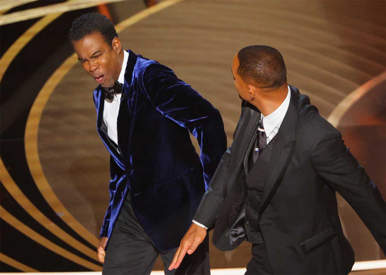 وسار سميث على خشبة المسرح وصفع روك فيما بدا للوهلة الأولى أنه مزحة مكتوبة مسبقا. لكن المزاج العام تحول إلى الكآبة بعد لحظات عندما عاد سميث إلى مقعده وصاح مرة أخرى “لا تنطق اسم زوجتي بفمك البغيض.”