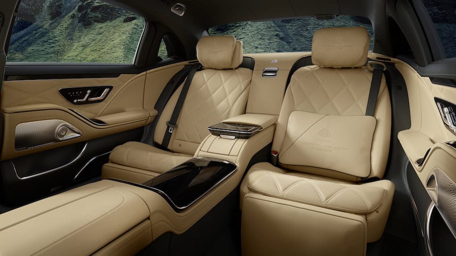 وصولاً إلى المقصورة الداخلية لـ سيارة 2023 الفخمة الخاصة هذه تم توفير كراسي ، وعجلة قيادة ، وبطانات أبواب ، ولوحة قيادة سفلية ، وسقف كلها مبطنة بجلد نابا بلون الرمل مع لمسات سوداء ، وتأتي الداخلية مع أرضيات ذات الوبر العالي باللون الأسود مع إطار جلدي بلون الرمال ، ومطرزة بشعار مرسيدس مايباخ .