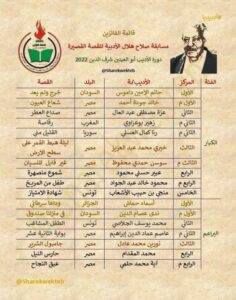 فاز الأستاذ حاتم الأمين داموس بالجائزة الأولى في الدورة الــ 21 من مسابقة صلاح هلال الأدبية الأهلية للقصة القصيرة بجمهورية مصر العربية ، عن قصته (خرج ولم يعد) ، وذلك بمشاركة 169 عمل من 17 دولة عربية .