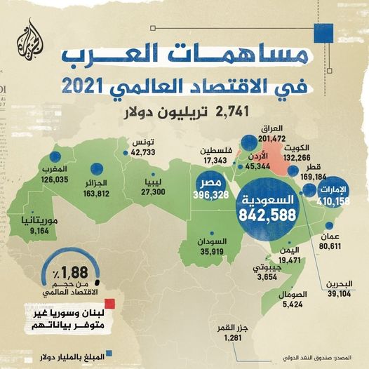 بإجمالي 2,741 تريليون دولار.. من بينها السودان بإجمالي 35,919 مليار دولار.. البنك الدولي ينشر مساهمات الدول العربية في الاقتصاد العالمي لعام 2021