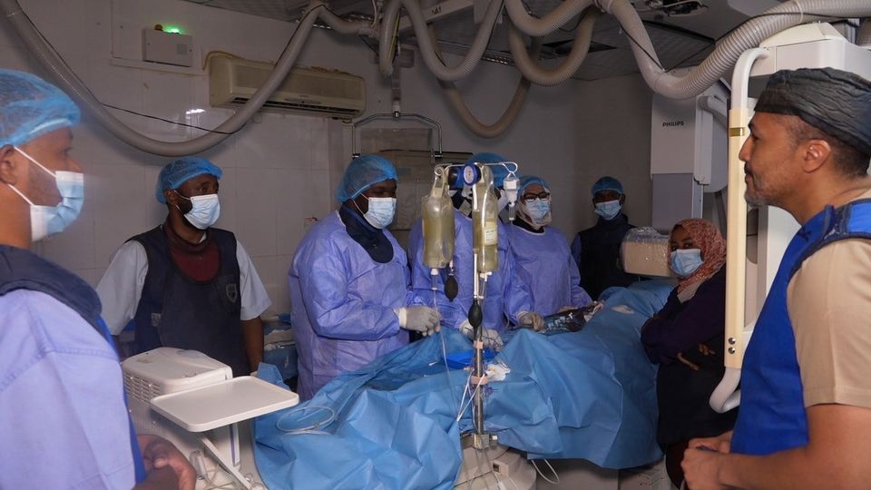 ضمن زياراته الميدانية والوقوف على سير العمل وتذليل العقبات بالمستشفيات ، شهد وزير الصحة الاتحادي المكلف د. هيثم محمد إبراهيم، إجراء 25 عملية قسطرة مجانية بمستشفى الشعب التعليمي يرافقه مدير برنامج العلاج المجاني د.فاطمة الزهراء إسماعيل وممثل الادارة العامة للطب العلاجي د .عصام الدين حسن ومهندس طبي مي فتح العليم، وبحضور د.صلاح الباشا المدير القومي للمركز القومي للقلب.