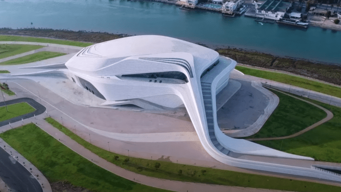 بُني المسرح على ضفاف نهر أبي رقراق بتصميم من المهندسة المعمارية العراقية البريطانية الشهيرة الراحلة، زها حديد، التي توفيت سنة 2016.