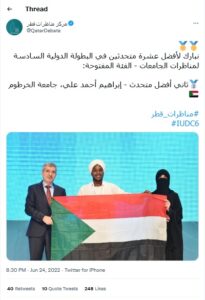 تحت شعار “السلام العالمي مسؤولية الجميع”، أُقيمت نهائيات بطولة قطر للمناظرات السادسة بمدينة إستنول التركية بين 17 و22 يونيو الجاري، بمشاركة 353 طالبا وطالبة من 48 دولة، يمثلون 91 فريقا بينهم 28 فريقا لغير الناطقين بالعربية، لمناقشة أفكار حول قضايا مجتمعية معاصرة باللغة العربية.