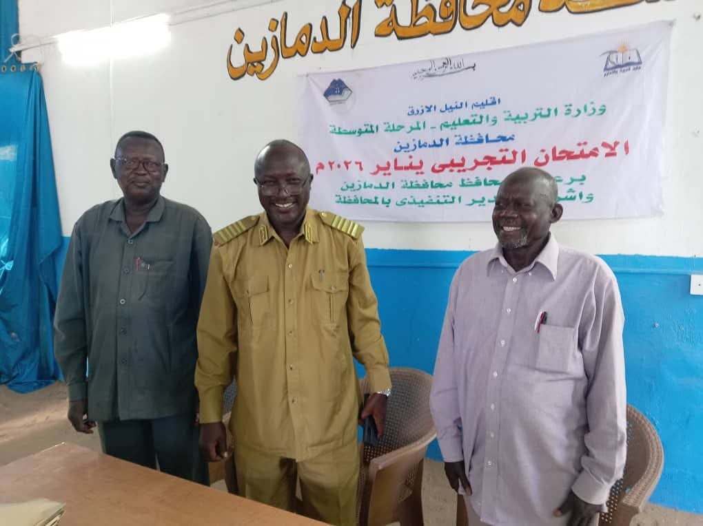 دشن الاستاذ ياسر احمد الطالب المدير التنفيذي لمحافظة الدمازين اليوم برئاسة المحافظة توزيع الامتحان التجريبي لشهادة المرحلة المتوسطة بالمحافظة بحضور الاستاذ محمد جماع مدير المرحلة المتوسطة بوزارة التربية والتعليم والاستاذ البدري حميدي خميس مدير المرحلة المتوسطة بالمحافظة ومدراء المدارس والمشرفين .