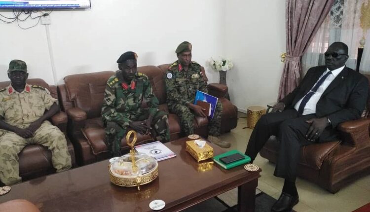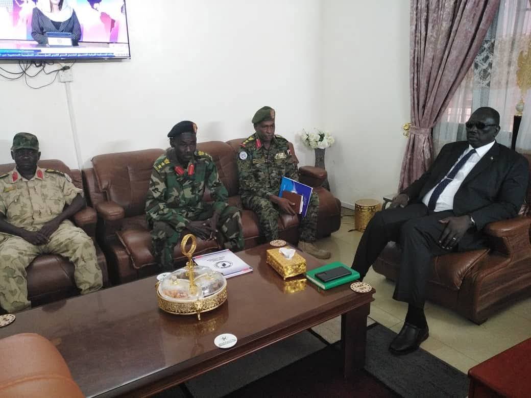 إلتقى الفريـق أحمـد العمدة بـادي حاكم إقليم النـيل الأزرق رئيس لجنـة الأمن بالإقليم بمكتبه اليوم وفد قيادات اللجنة العسكرية المشتركة للترتيبات الأمنية بقيادة العقيد الركن فتح الرحمن حمد النيل والعقيد الركن القاضي موسى والعقيد الركن مصلح يعقوب ناصر .