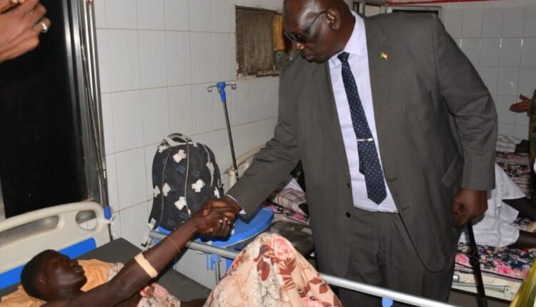 وكان في إستقبالهم العميد الركن تسيير حامد قائد المستشفي العسكري حيث إطمأن الحاكم والوفد المرافق له على أوضاع الجرحى الذين شاركوا في معركة الكرامة لتطهير المناطق الجنوبية الغربية للإقليم من دنس التمرد وفلول مليشيا آل دقلو الإرهابية.