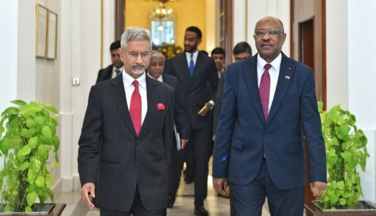 التقى وزير الخارجية والتعاون الدولي السفير محي الدين سالم أحمد إبراهيم اليوم بالعاصمة الهندية نيودلهي نظيره وزير الشؤون الخارجية الهندي د. سوبرامانيام جايشانكار، حيث أجرى الجانبان جلسة مباحثات تناولت العلاقات الثنائية بين البلدين وسبل تعزيزها